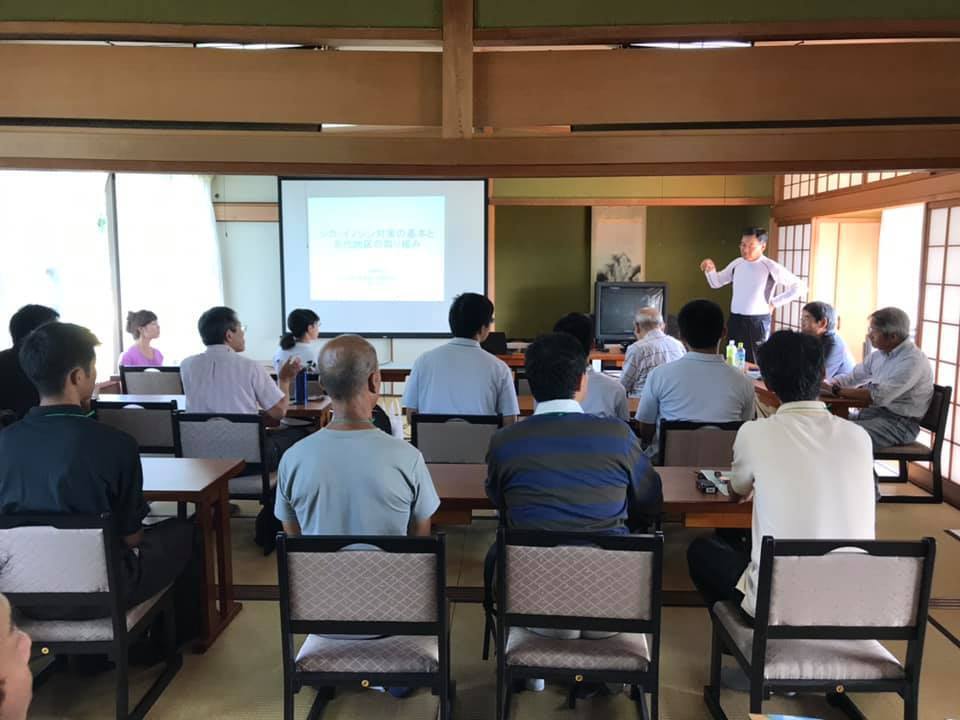 自然豊かな丹波篠山で企業、自治体向けに野生の動物の生態や行動、生態系の構成員としての役割について理解を深める講座です。